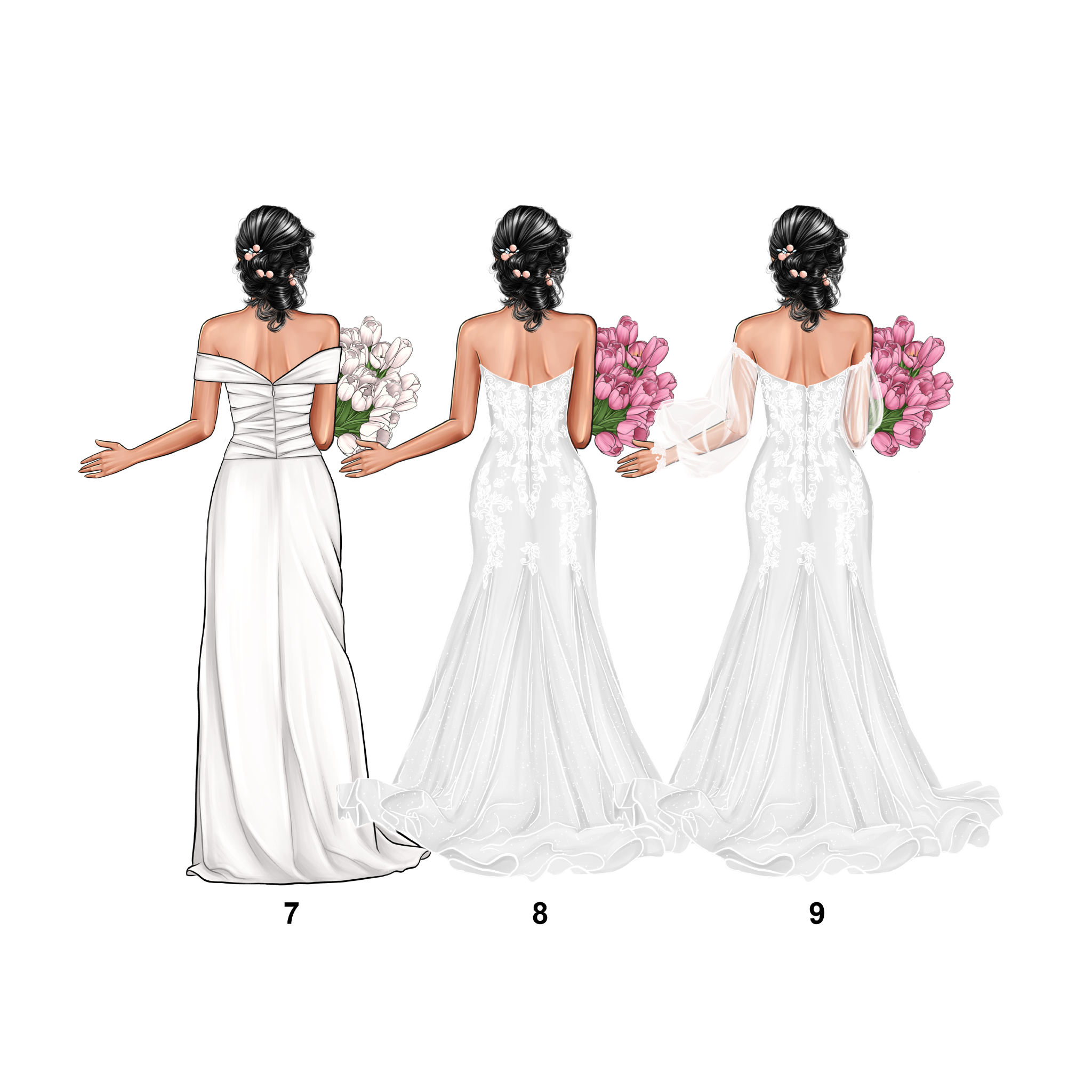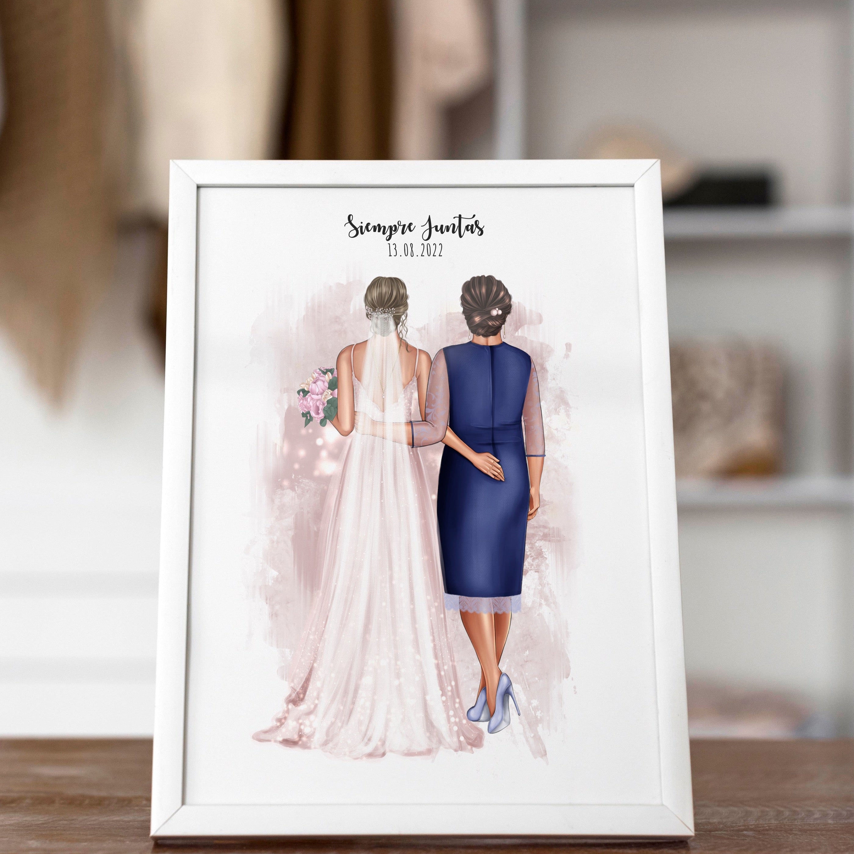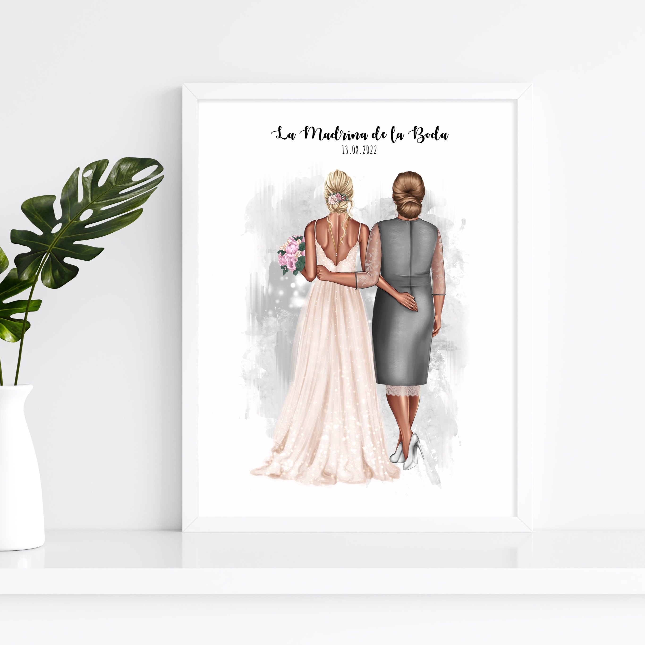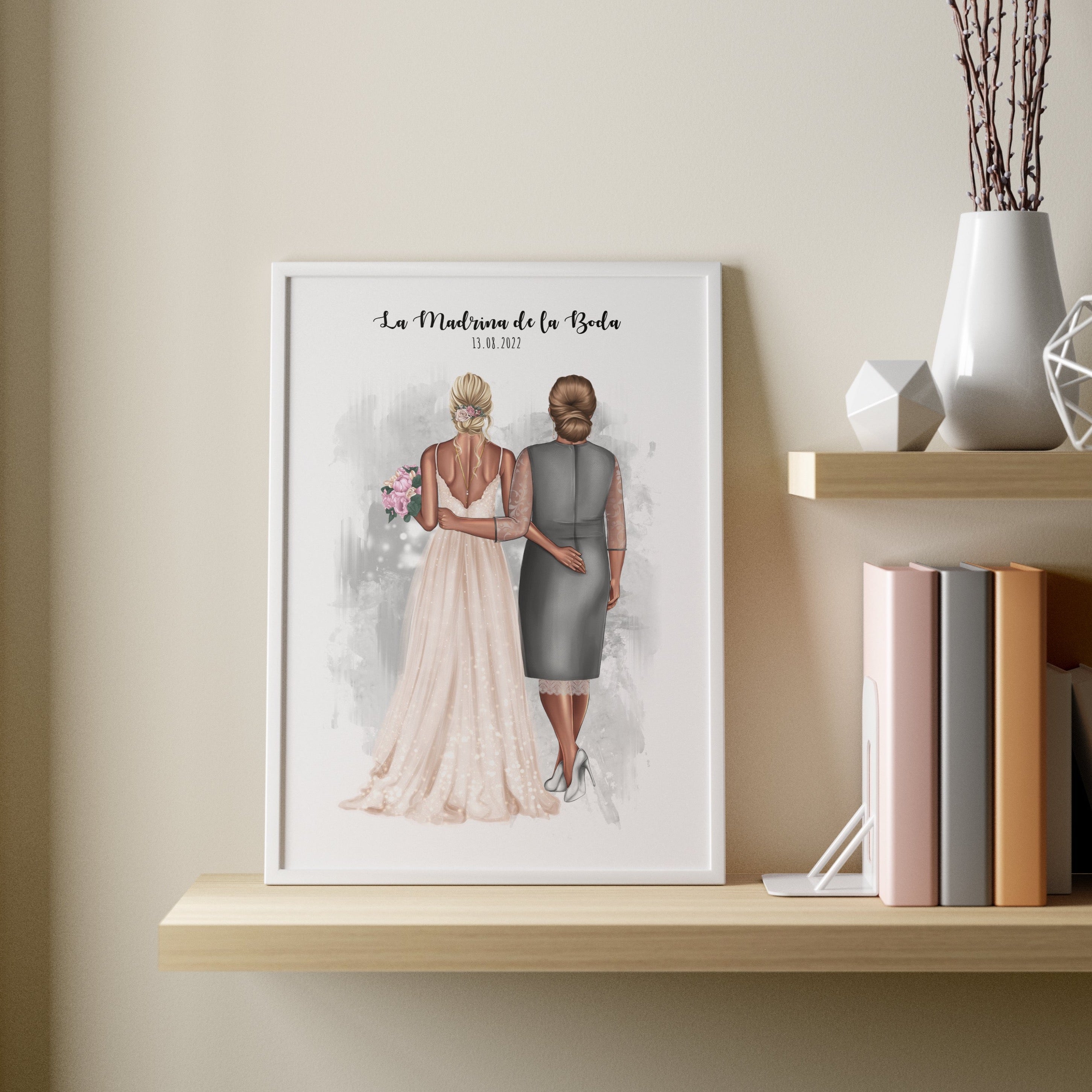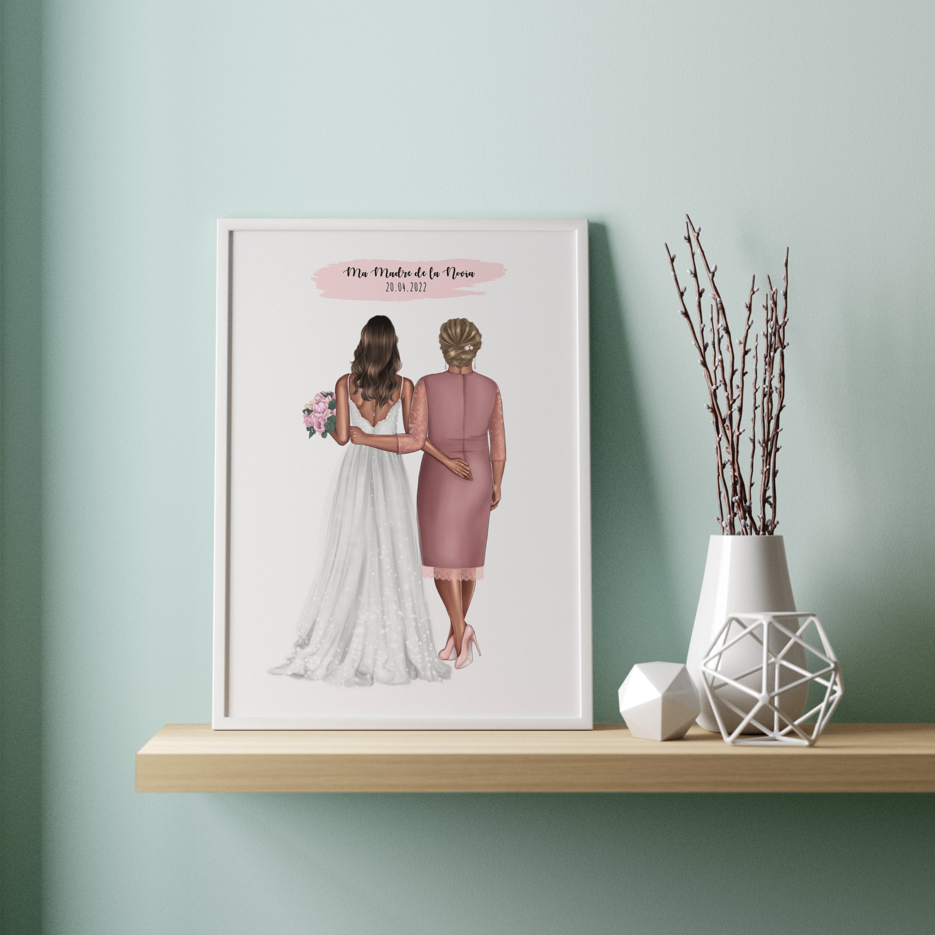 Fully personalised wedding print. The best gift for the Bride's or Groom's mother, or to any special woman in your life. The personalisations are selected on the different sections, and you can check the hairstyles in the photo gallery. We can discuss everything via email: info@saradebono.com