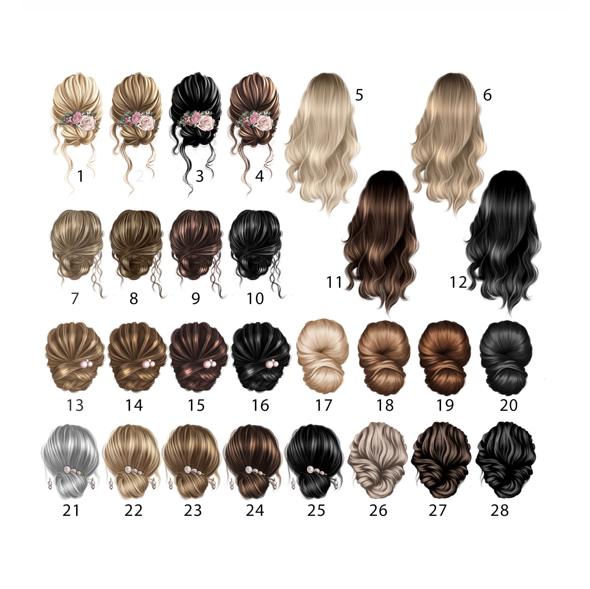 Personalise your design by selecting the options that you will find next or under the gallery, depending if you are using a laptop or a mobile device. Check the photo 2 to select the haistyles.