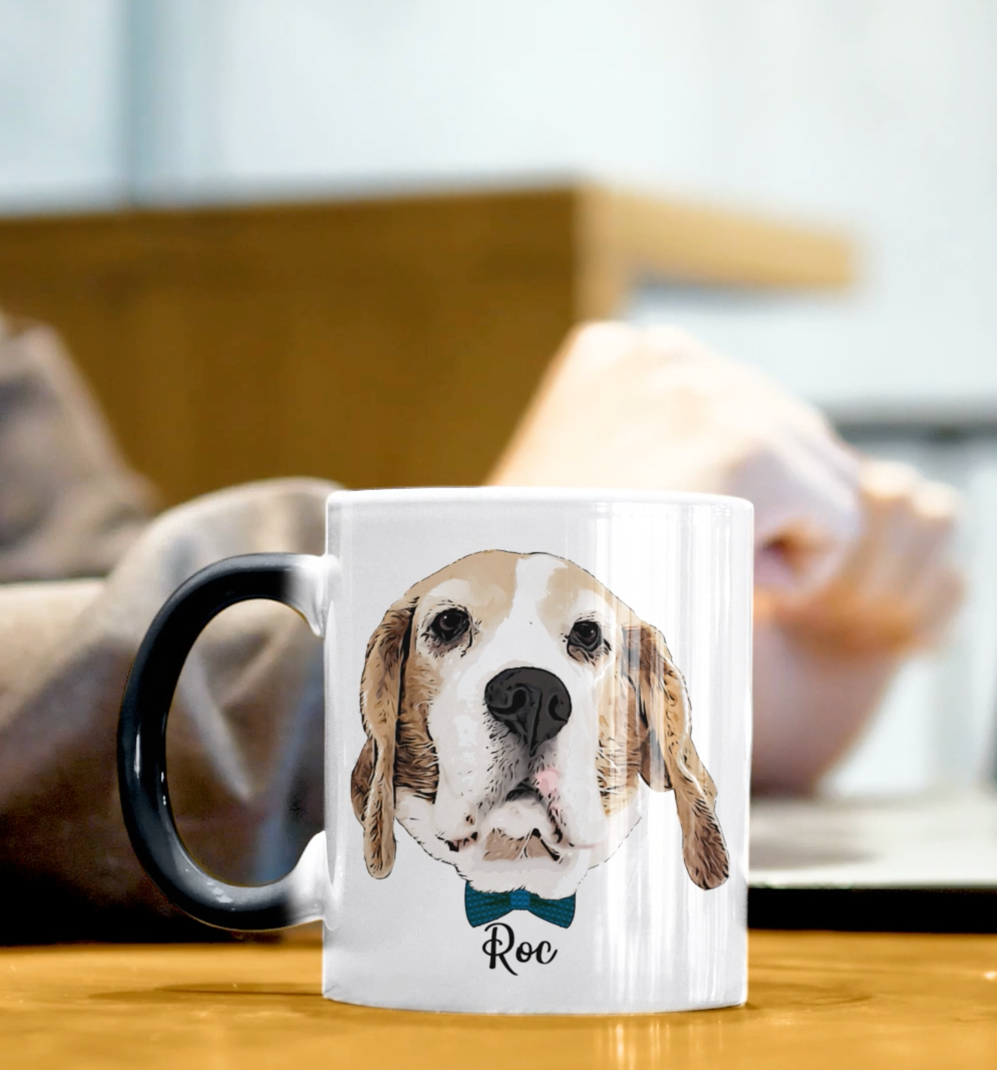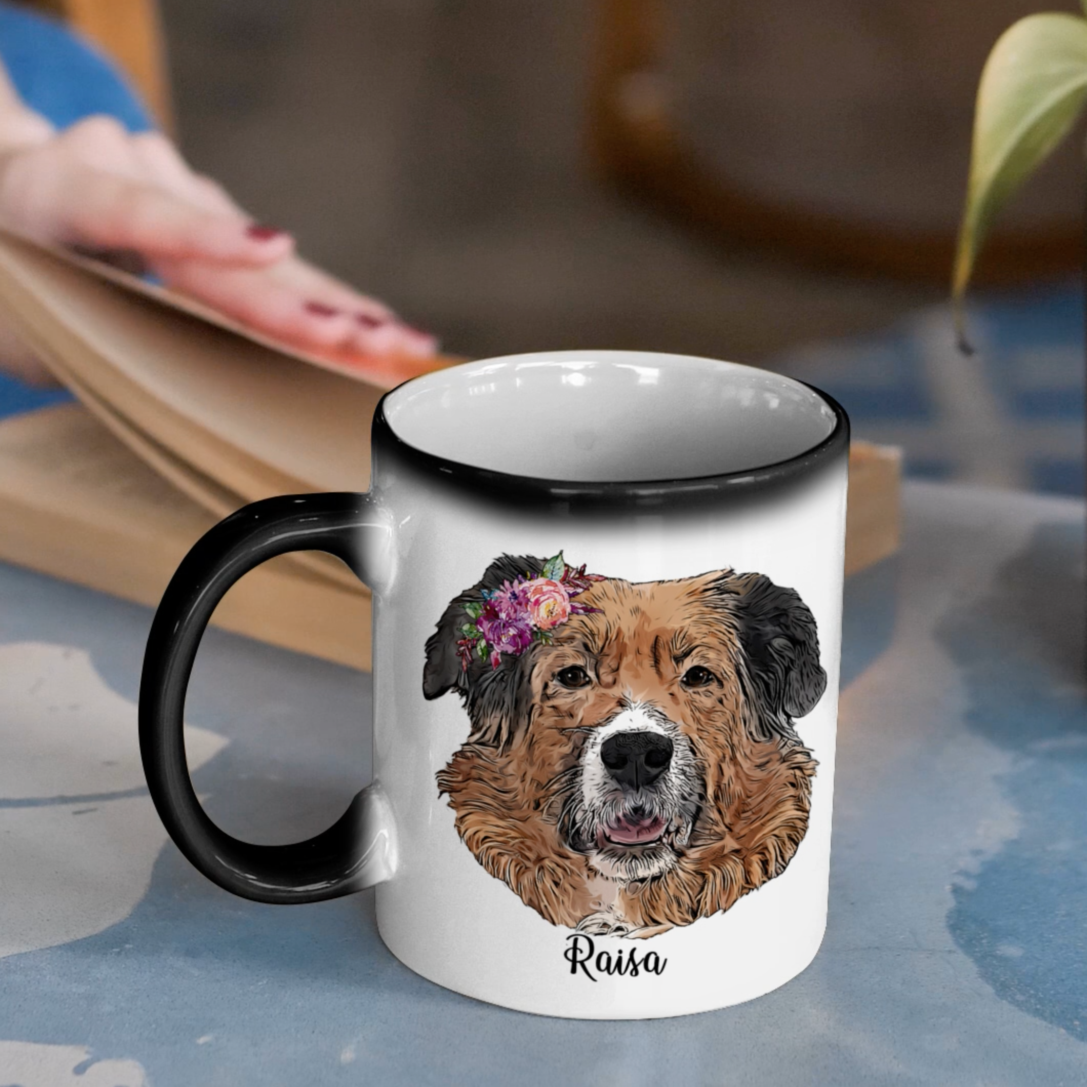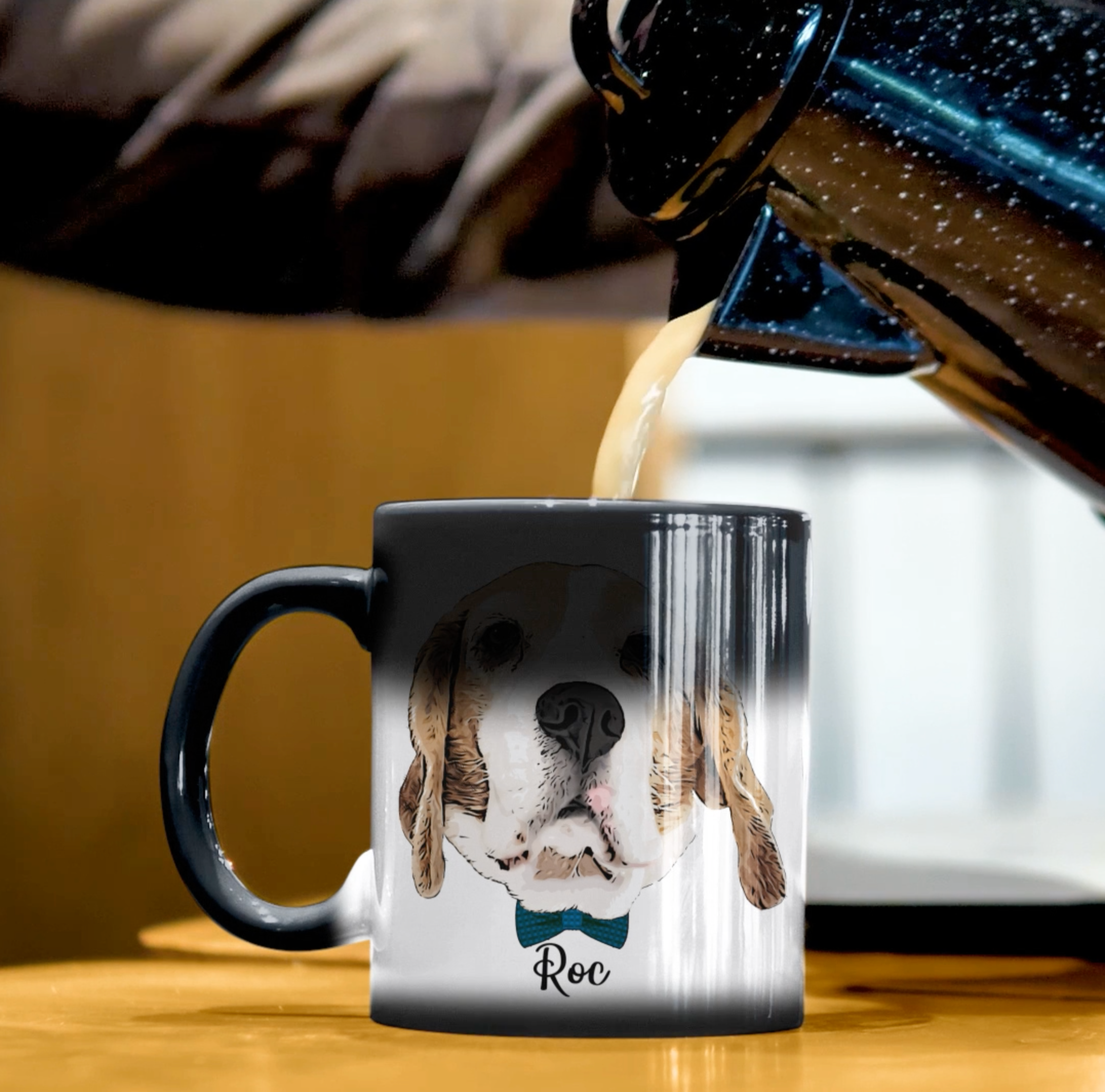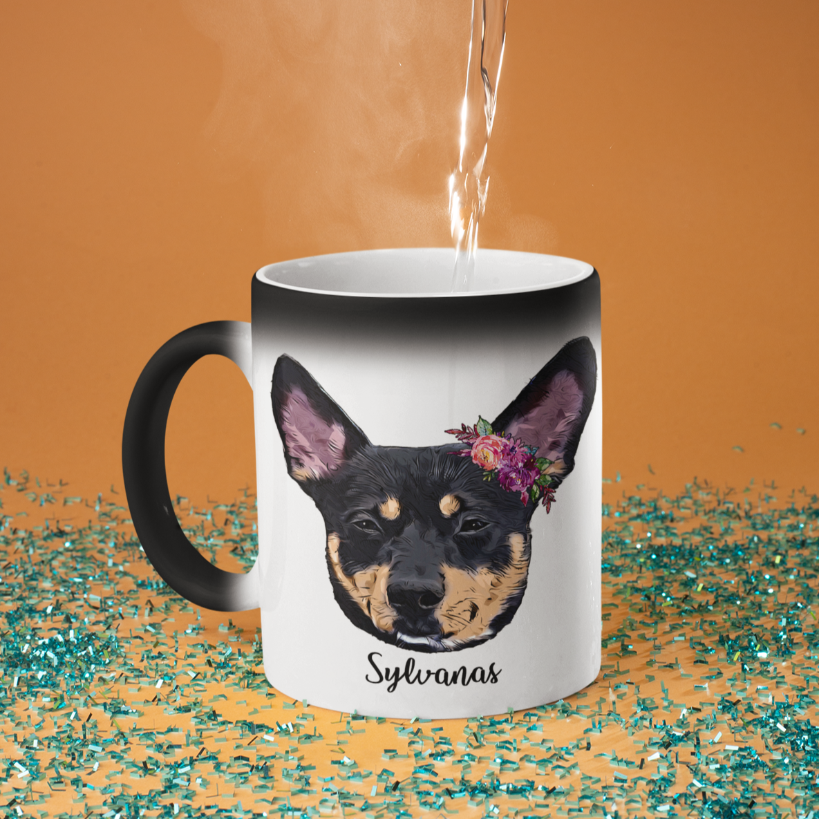 A Beautiful Magic Mug with the portrait of your pet will be the unique piece that will join your morning coffee or tea. The portrait will be placed on one side and a few words on the other, and it will make the perfect gift for any friend, partner or family member. The portrait will reveal when the mug gets hot.