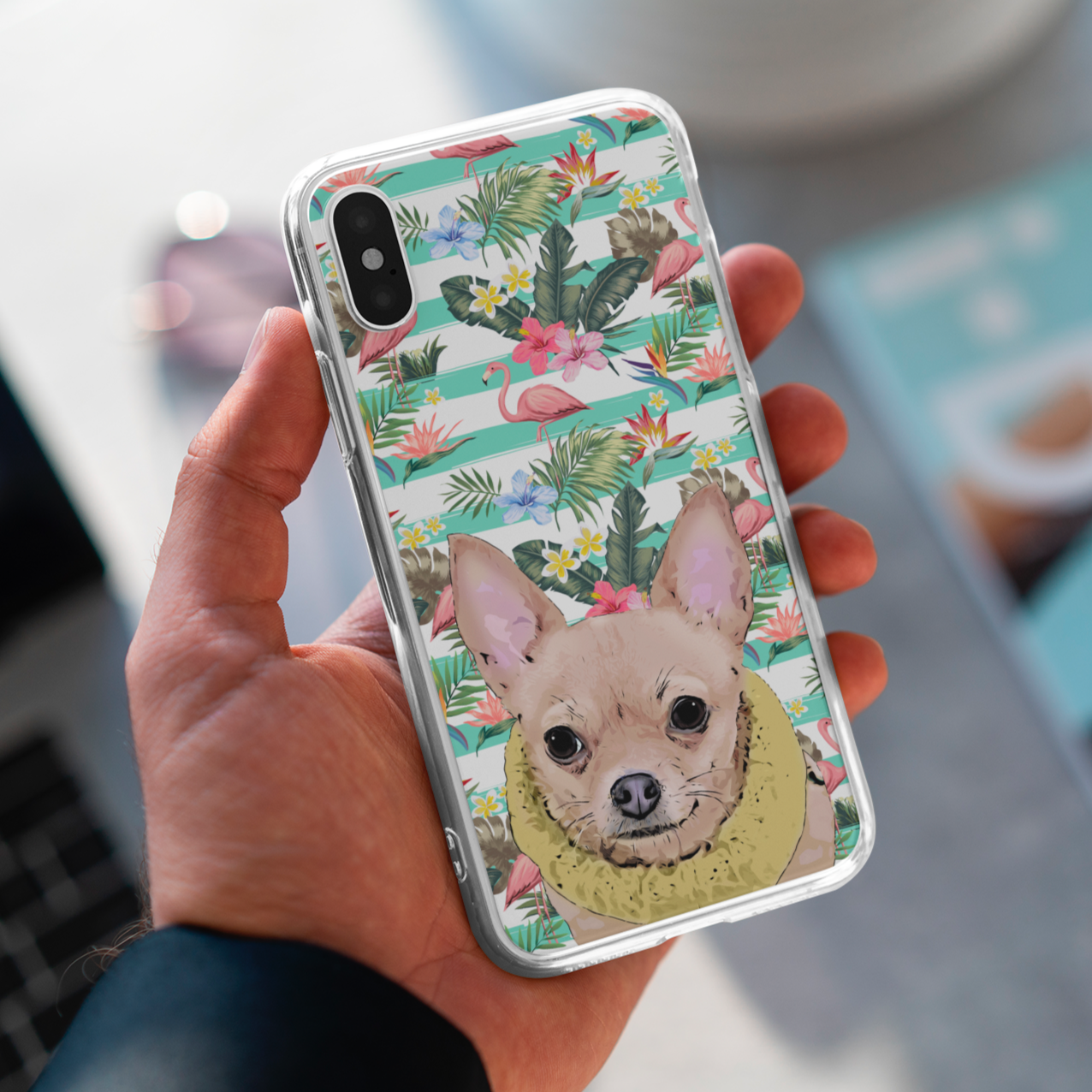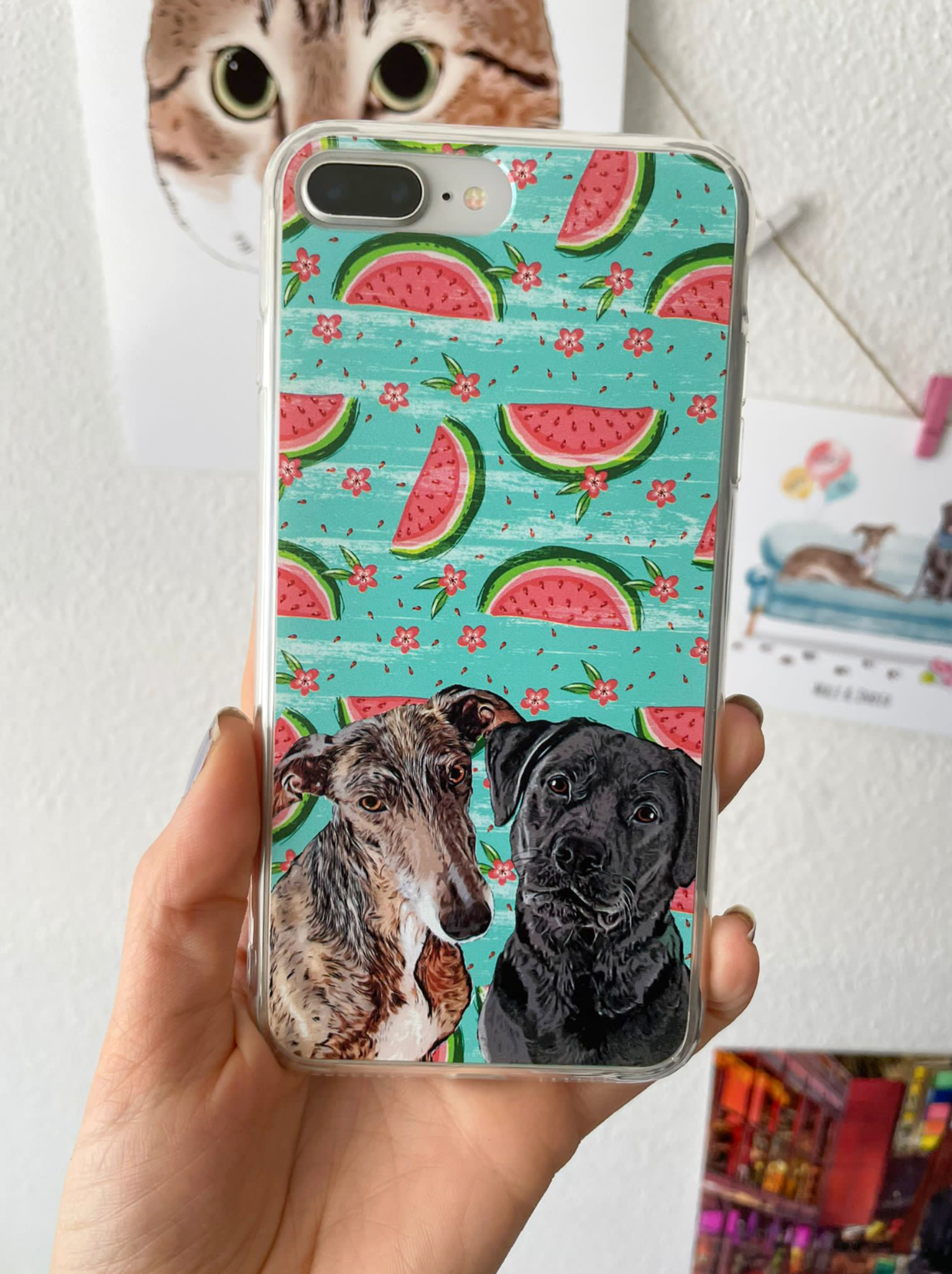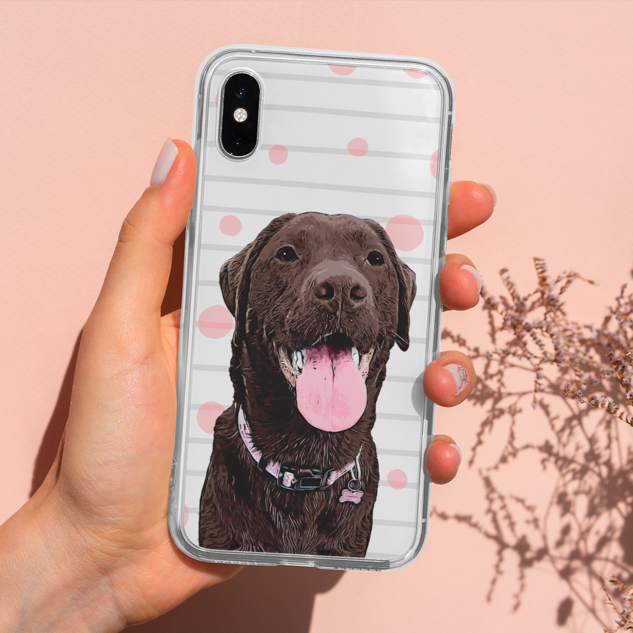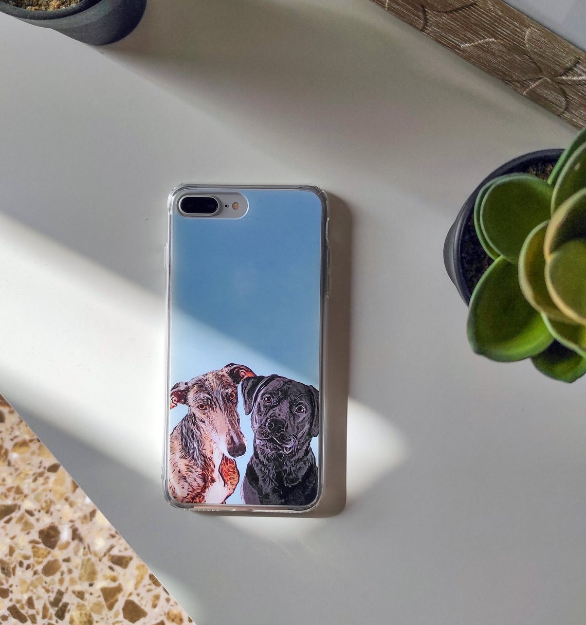 Attach the photo for the portrait using the "Choose Image" button. In one of the customization boxes write the exact model of your mobile in the box and the background that you would like. You can choose two to see two examples. If you prefer a clear or one-color cover, please mark it on your commentary.