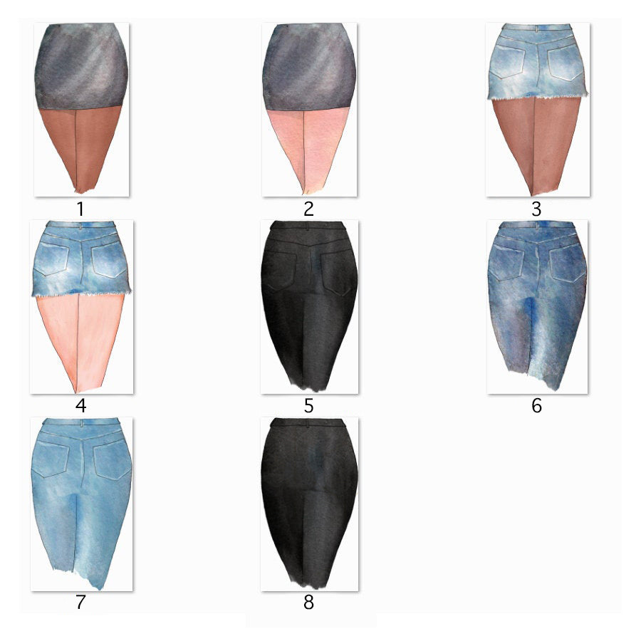Personalise your design by selecting the options that you will find next or under the gallery, depending if you are using a laptop or a mobile device. Check the photos 2 and 3 to select the haistyles and bottoms.