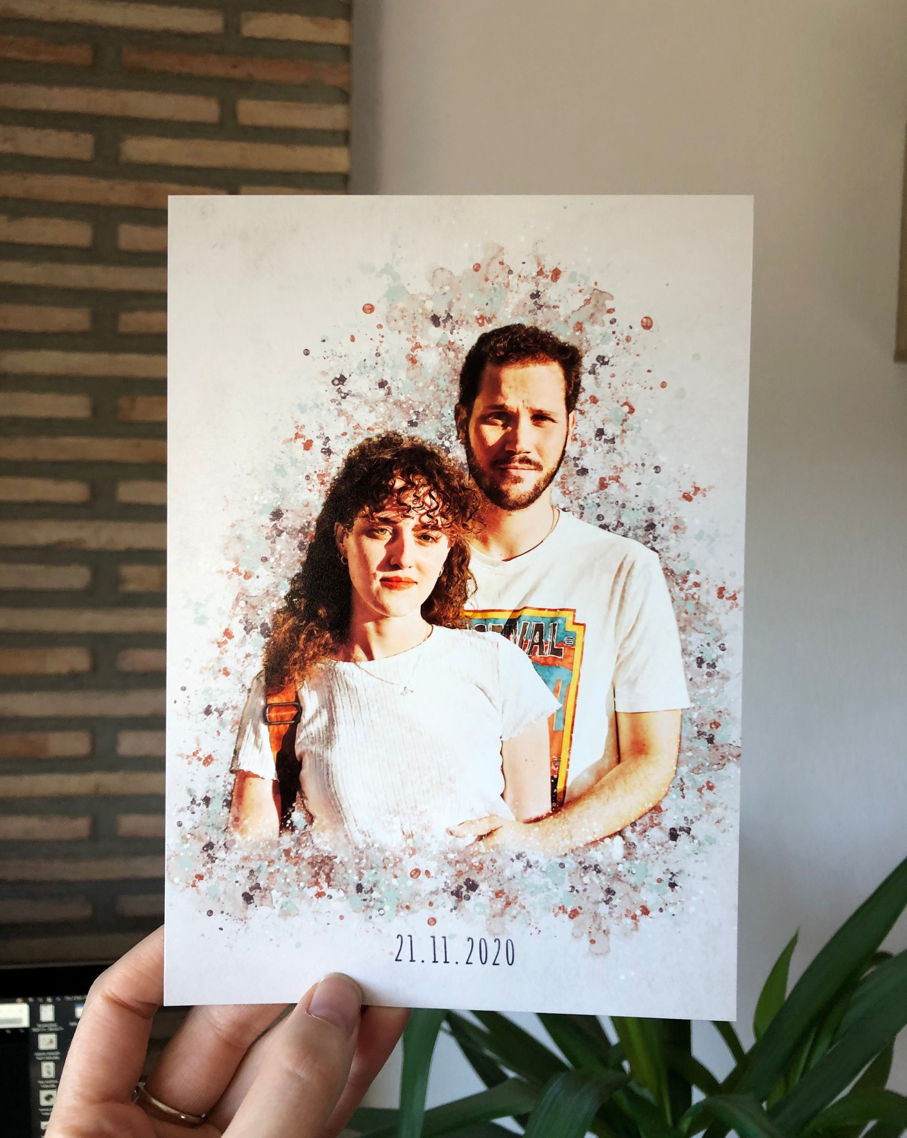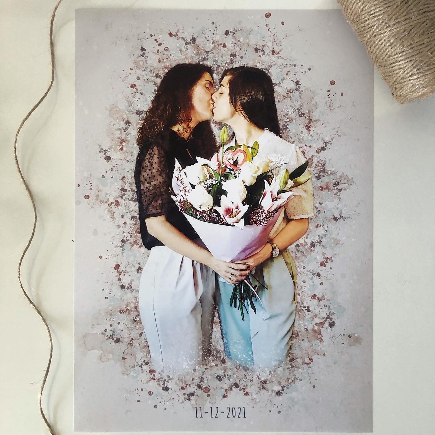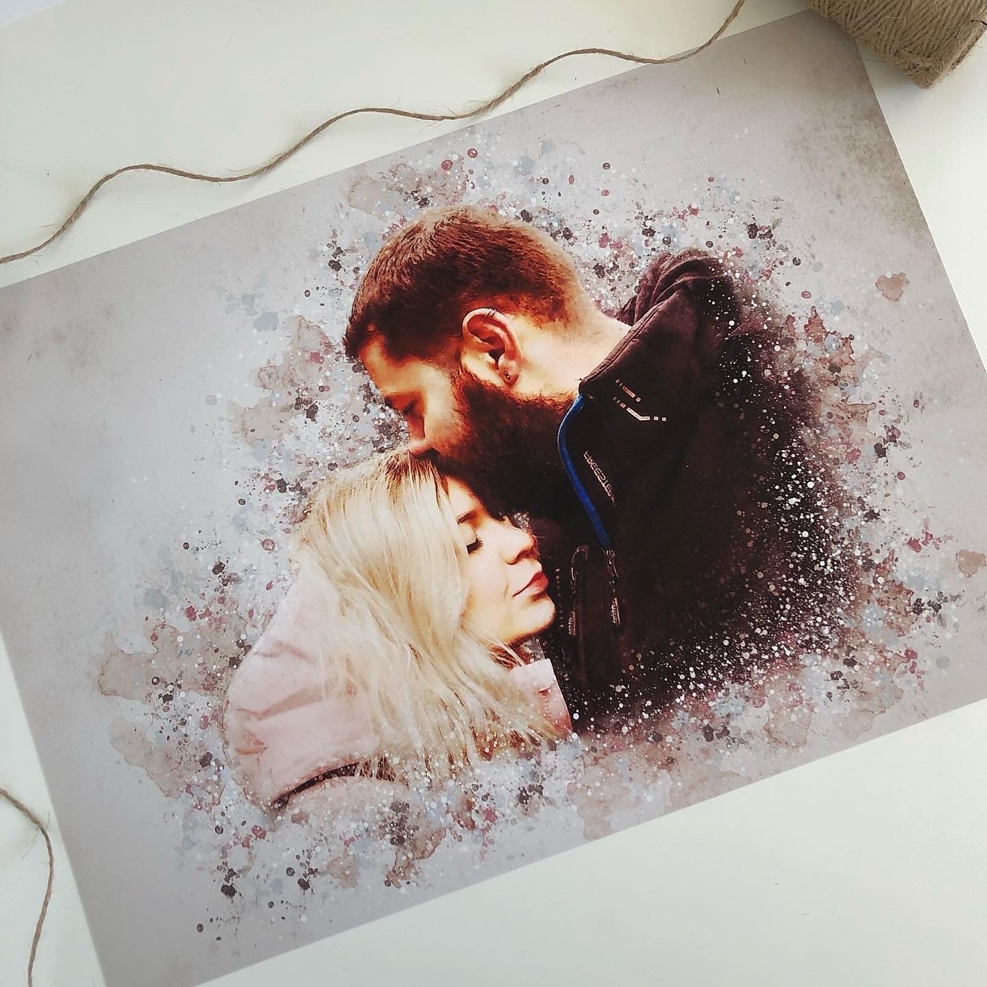 San Valentines Day is coming and you are looking for a special present that represents your love? Is it your anniversary and you want a custom present for your partner? Do you want a wedding a different wedding present? Get this custom, digital and printable portrait or canvas by sending me a good quality picture from your phone, or even better if you send me a picture taken by a photo camera.