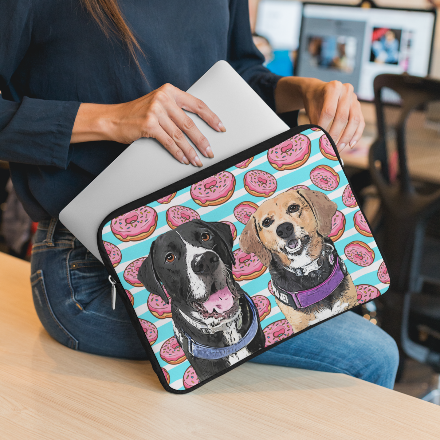 We love making pet portraits printed on different products, and these personalised Laptop Sleeves with your pet portrait and a cute and funny background is one of our latest additions to our online shop.
